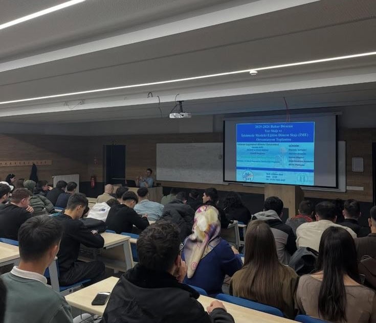 Toplantıda, Bölüm Başkanı Öğr. Gör. Dr. Alper Turan Ergüzel öğrencilere staj süreciyle ilgili önemli bilgiler sundu. Staj başvuru adımları, staj yapılabilecek işletmeler, sürecin işleyişi ve staj süresince dikkat edilmesi gereken noktalar detaylı olarak aktarıldı.