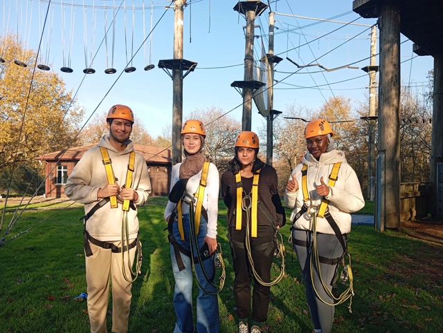 Programın sonunda öğrenciler, zipline hattında ağaçların arasından geçerek unutulmaz bir deneyim yaşadı. Macera Parkı’nda düzenlenen etkinlik, uluslararası öğrencilerin hem eğlenmesini hem de sosyal uyumlarını güçlendirmesini hedefledi.